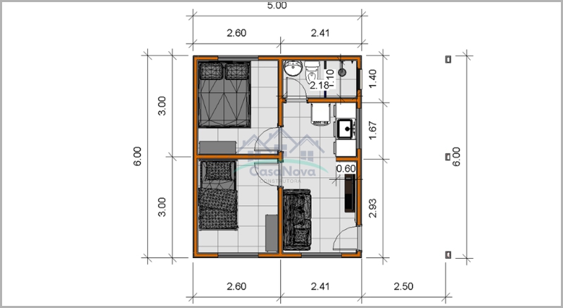45m² - 2 Quartos